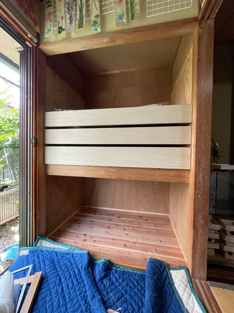 戸建て 造作工事 山口県下関市垢田 造作工事 「水引」は、贈答品や封筒に付けられる飾り紐です。お施主様は、この水引を使った素敵なインテリアを作っています。水引アートを飾るための棚を和室に造作しました。また、水引アート制作するための材料を収納するため、元々押入れだった場所に出し入れのしやすい引出しタイプの棚を造作しました。 1 / 1 前の施工事例 戸建て 山口県 下関市 洗面化粧台交換工事 次の施工事例 戸建て 山口県宇部市 天井貼替工事
