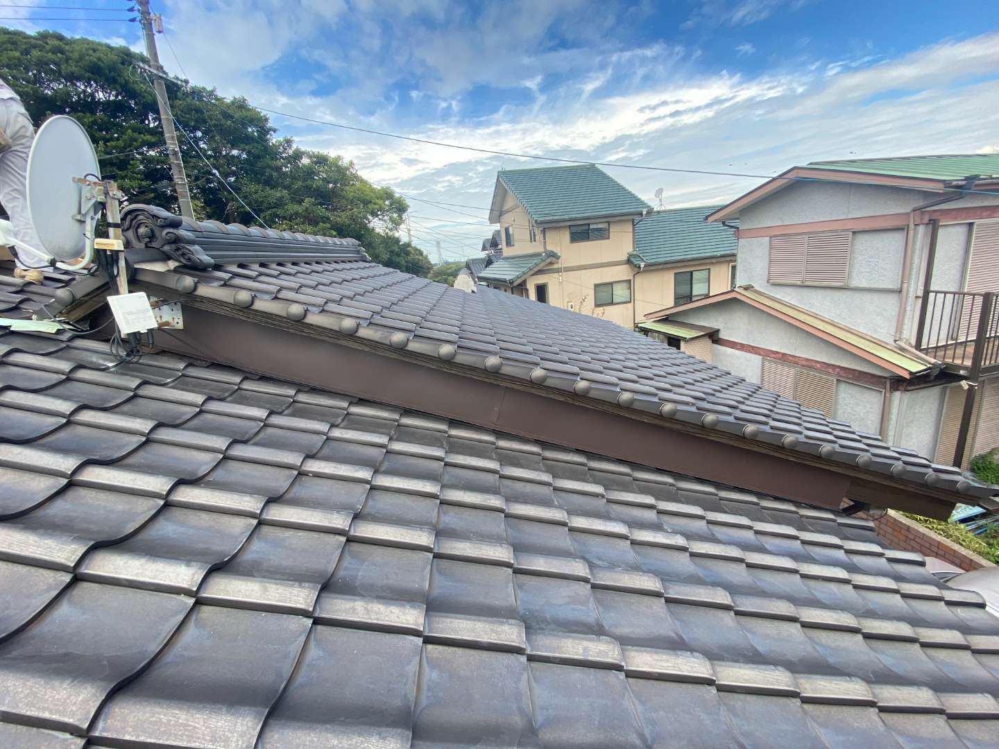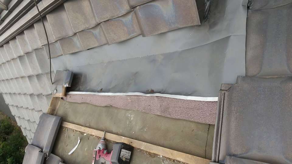 屋根の谷部から雨漏りがありましたので既存の銅板を撤去しガルバリウム鋼板の谷板金を設置しました。